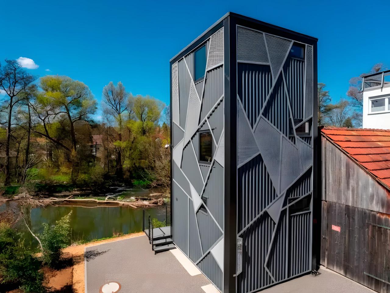 Moduleform’s DQ Tower takes a radically different approach to compact living by building upward rather than outward. This three-story prefab unit occupies a mere 4 by 4.2-meter footprint while delivering spatial experiences rarely encountered in micro-dwellings. The vertical philosophy creates distinct zones for different activities, mimicking the floor-by-floor separation of conventional homes rather than the open-plan scramble defining most tiny houses.